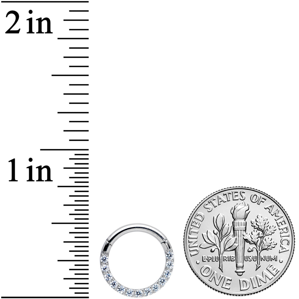 14 Gauge 3/8 Clear CZ Gem G23 Titanium Paved Hinged Segment Ring