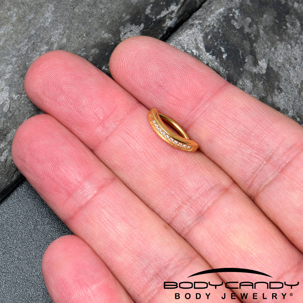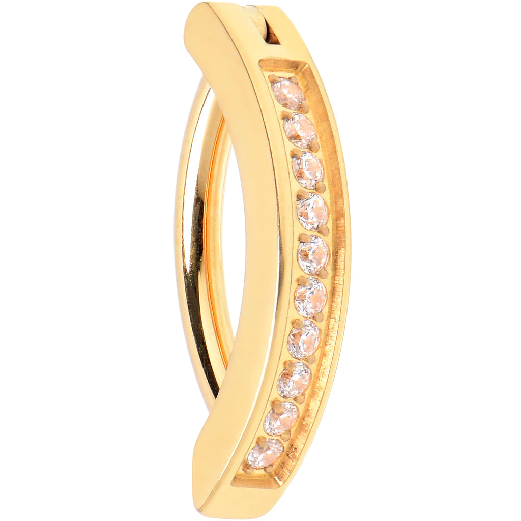 Hypoallergenic jewelry for sensitive skin14 Gauge 3/8 Gold Tone CZ ASTM F-136 Titanium Hinged Hoop Belly Ring