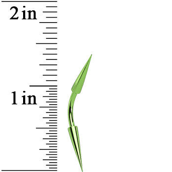 This green anodized titanium barbell combines crazy amounts of shine with dangerous-looking spikes. 14 gauge curved barbell can be used in multiple piercings.