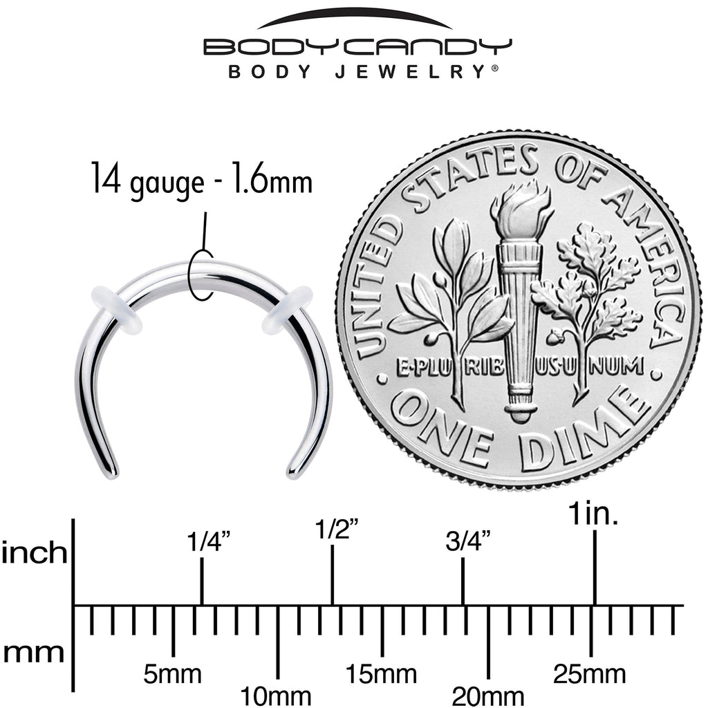 Keep it simple with this 14 gauge septum ring. It's made with a 10mm durable 316L surgical grade stainless steel and features a curved taper design for comfortable insertion and removal. Whether you're stretching a piercing or just going for a new look, you can rock in multiple piercings including ear lobe, septum, and conch, and it features o-rings for secure wear. Keep it simply stylish with this classic pincher.Specifications