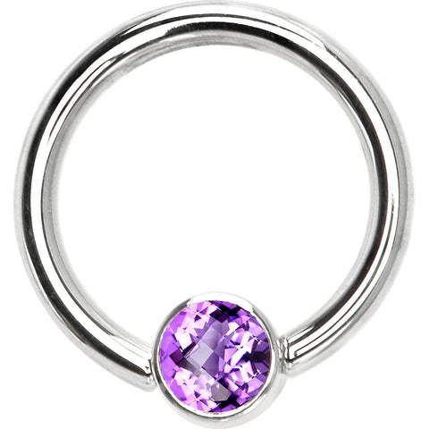 14G 3/8 Solid 14K White Gold Purple CZ Gem Captive Ring
