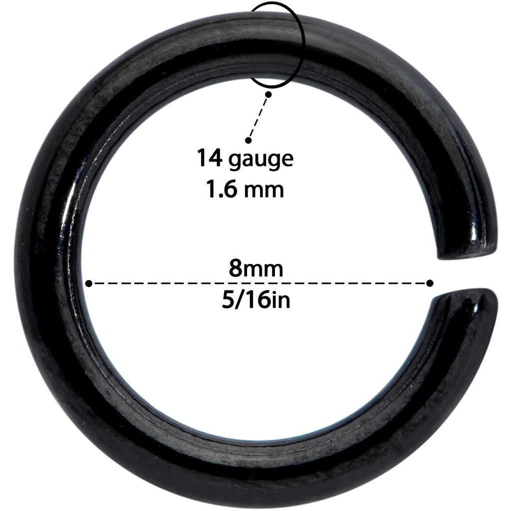 14 Gauge (1.6mm), 5/16" (8mm), 316L Surgical Grade Stainless Steel Seamless Circular Rings, Black Anodized over 316L Surgical Grade Stainless Steel Seamless Circular Rings, Sold as a Set of 12
