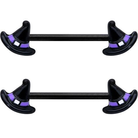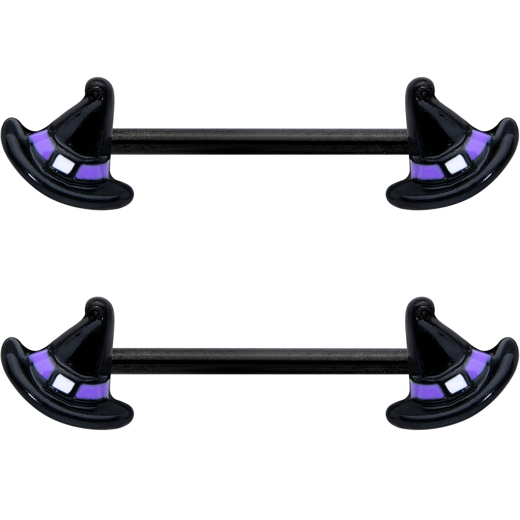 14G 5/8 Black Purple Band Witch Hat Halloween Nipple Ring Set