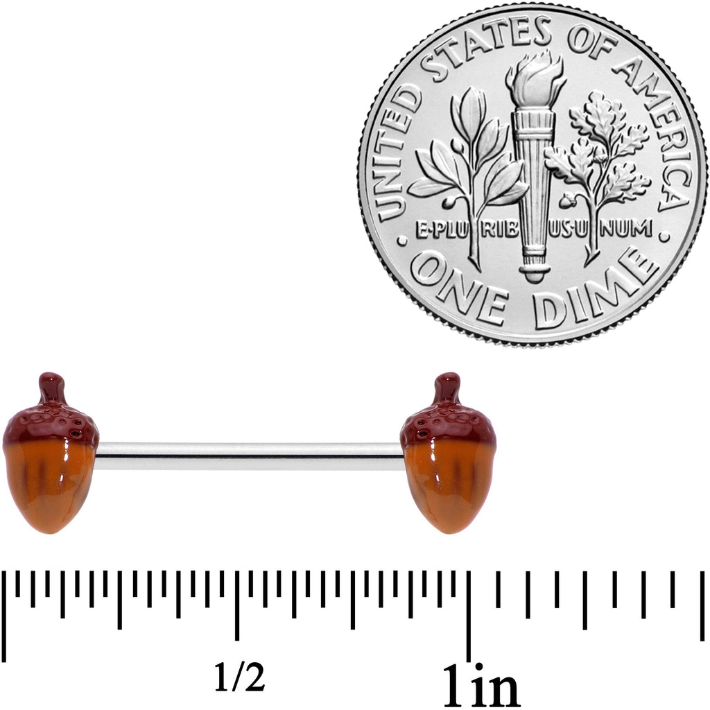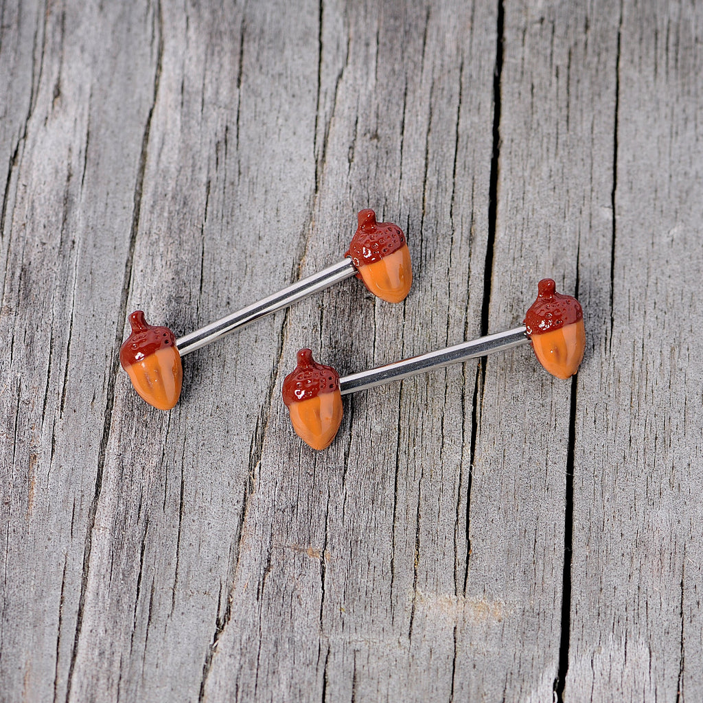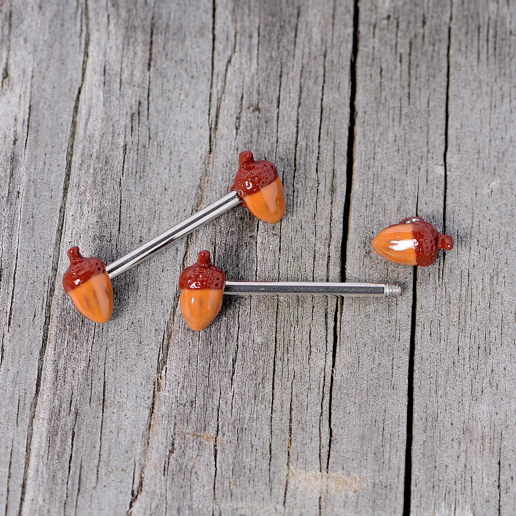 14 Gauge 5/8 Brown Autumn Acorn Barbell Nipple Ring Set