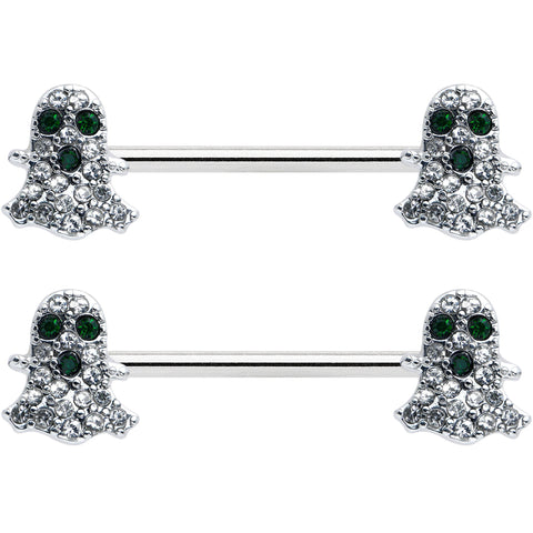 14 Gauge 5/8 Clear Black Gem Scary Ghost Barbell Nipple Ring Set