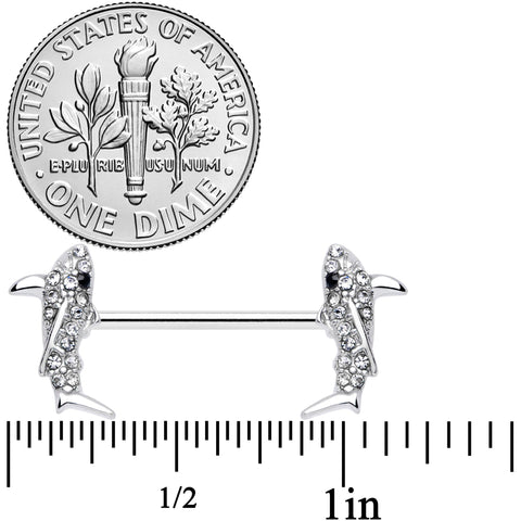 14 Gauge 5/8 Clear Black Gem Shark Barbell Nipple Ring Set