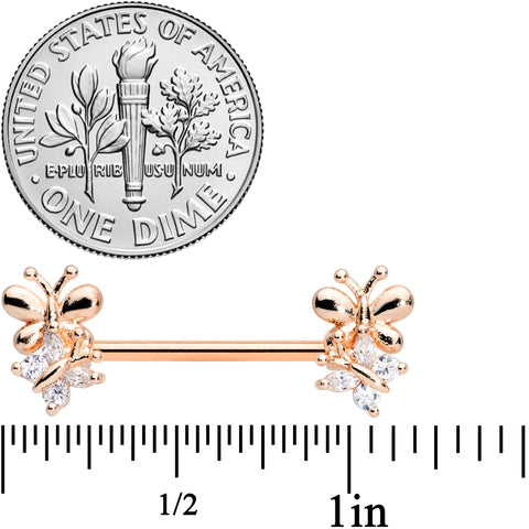 14 Gauge 5/8 Clear CZ Gem Rose Gold Tone Butterfly Barbell Nipple Set