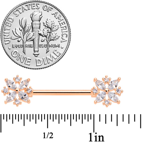 14G 5/8 Clear CZ Gem Rose Gold Tone Star Burst Nipple Ring Set