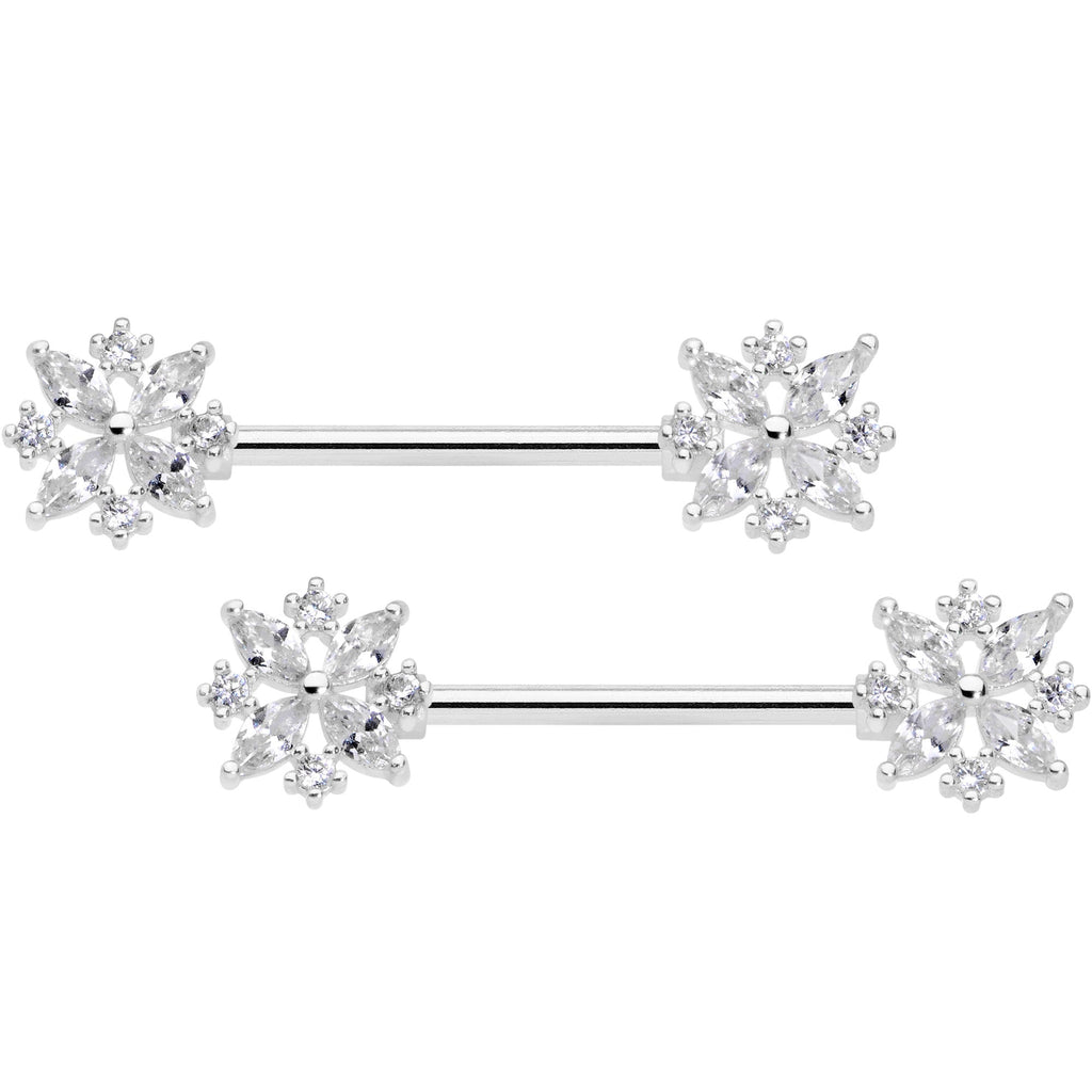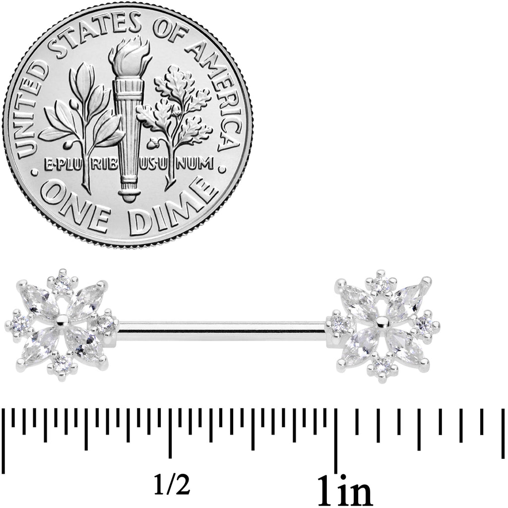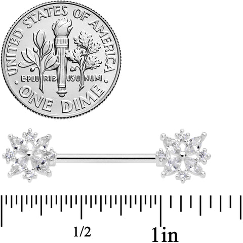 14 Gauge 5/8 Clear CZ Gem Star Burst Barbell Nipple Ring Set