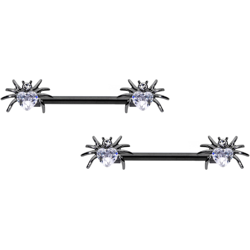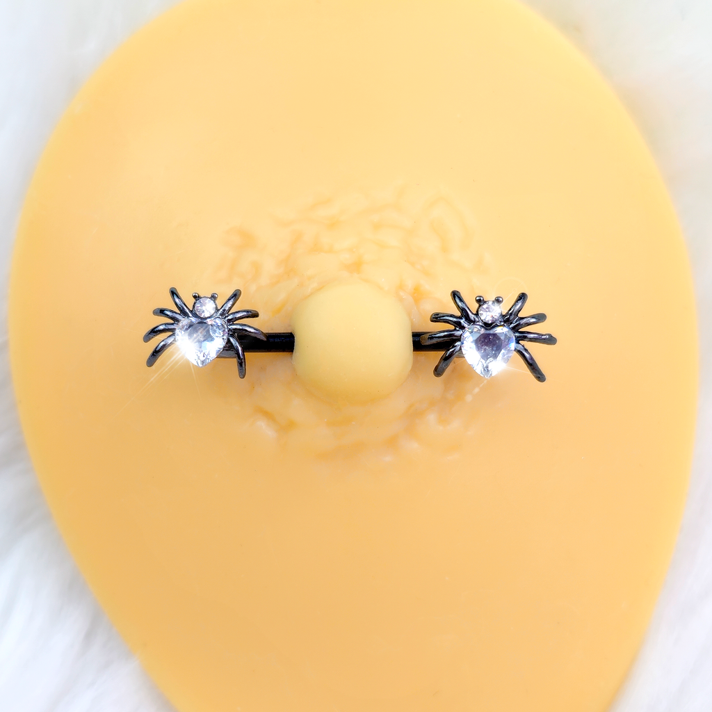 14 Gauge 5/8 Clear Gem Black Sexy Heart Spider Barbell Nipple Ring Set