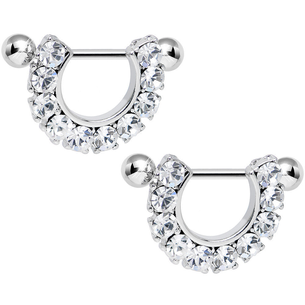 Clear gem nipple ring set. Enhance your look with true style by accessorizing with this titillating nipple shield set body jewelry.