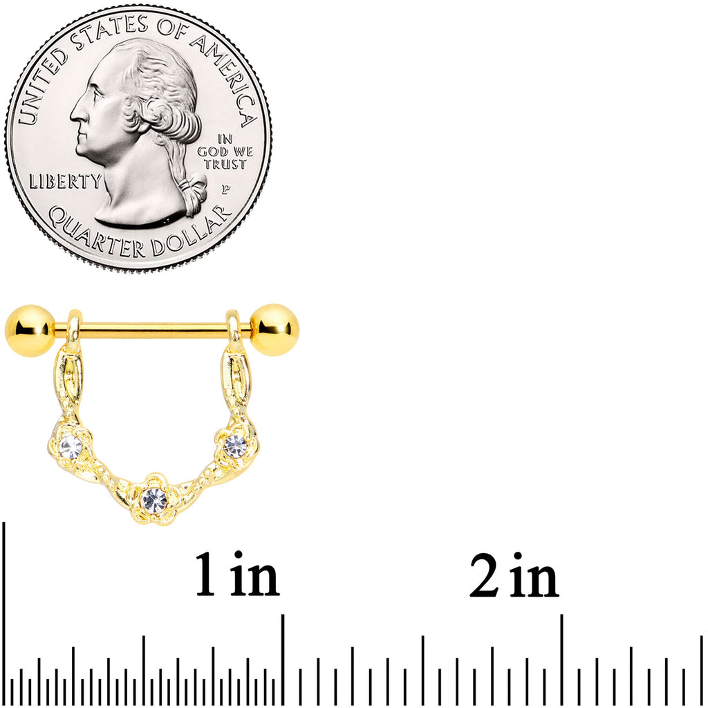14 Gauge 5/8 Clear Gem Gold Tone Flower Dangle Nipple Ring Set