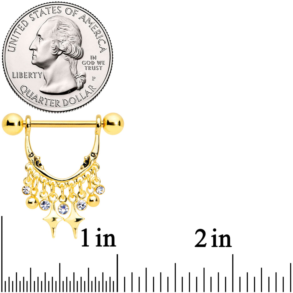 14 Gauge 5/8 Clear Gem Gold Tone Moons Dangle Nipple Ring Set