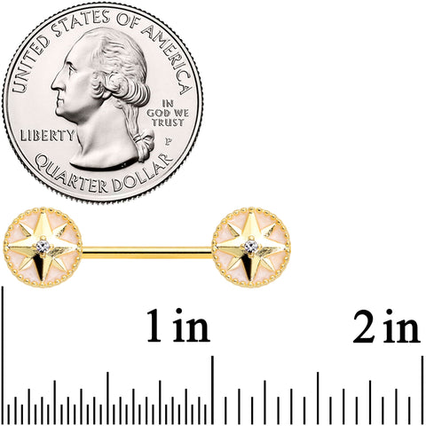 14 Gauge 5/8 Clear Gem Gold Tone Sailors Compass Barbell Nipple Ring Set
