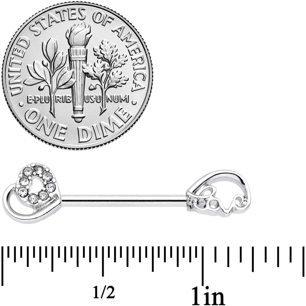 14 Gauge 5/8 Clear Gem Heart Swirl Barbell Nipple Ring Set