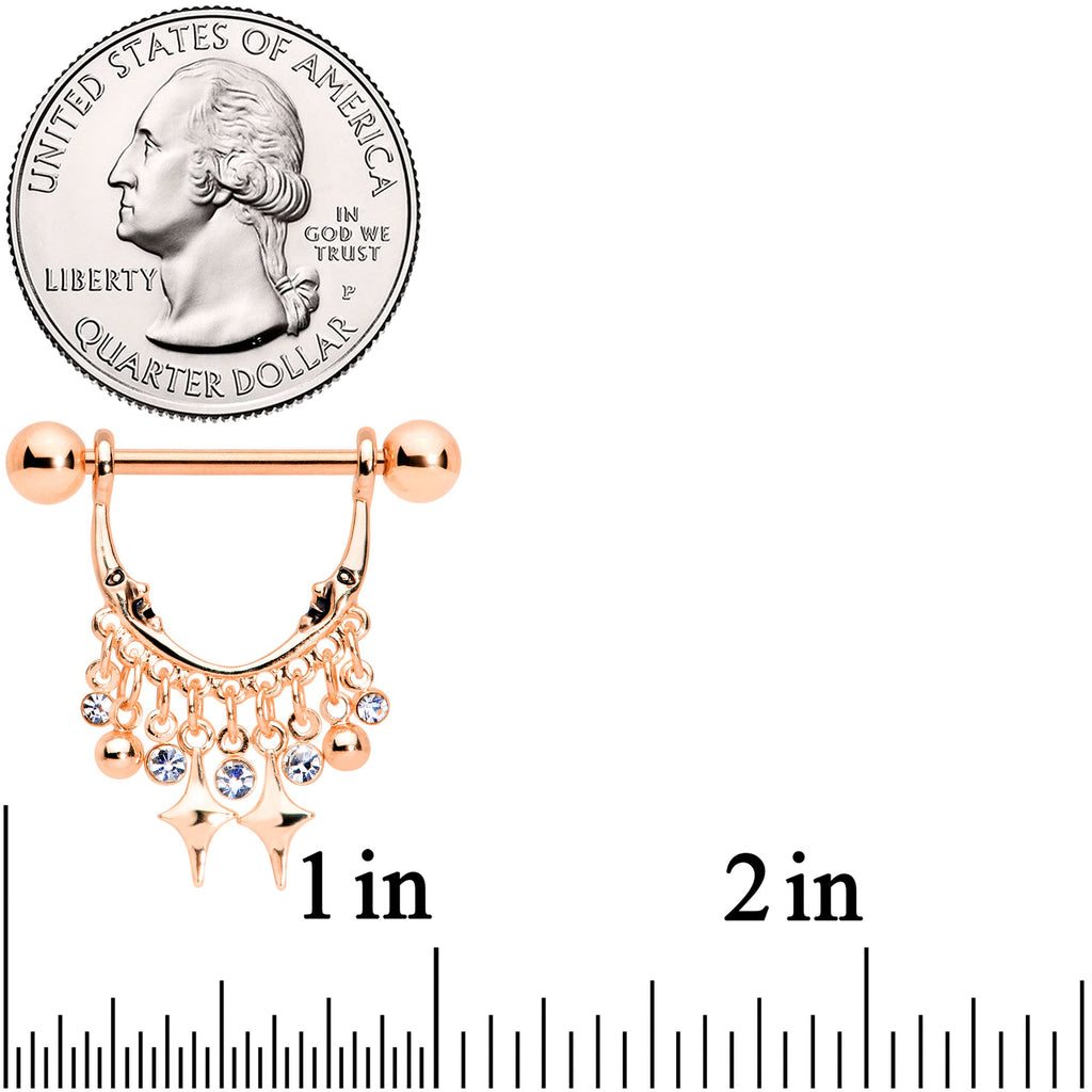 14 Gauge 5/8 Clear Gem Rose Gold Tone Moons Dangle Nipple Ring Set