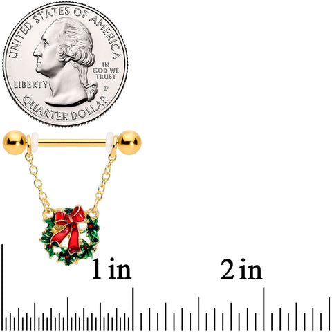 14 Gauge 5/8 Gold Tone Festive Wreath Christmas Dangle Nipple Ring Set