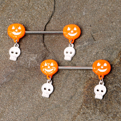 14 Gauge 5/8 Orange Pumpkin Skull Halloween Dangle Nipple Ring Set