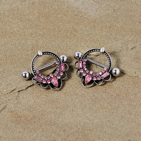 14 Gauge 5/8 Pink Gem Filigree Nipple Shield Set