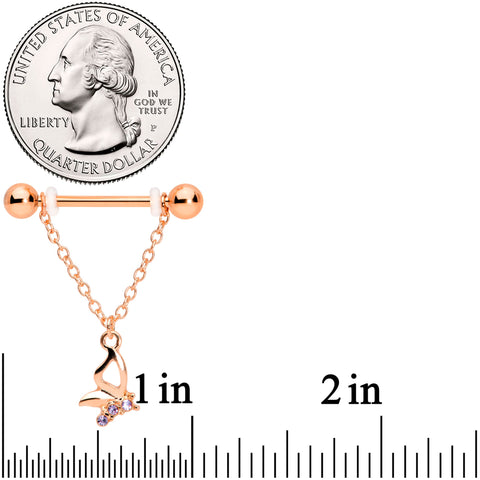 14 Gauge 5/8 Purple Gem Rose Gold Hue Butterfly Dangle Nipple Ring Set