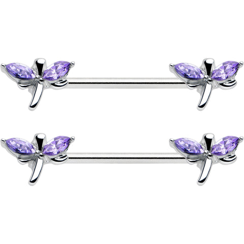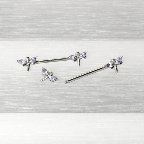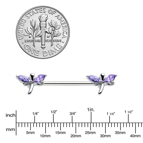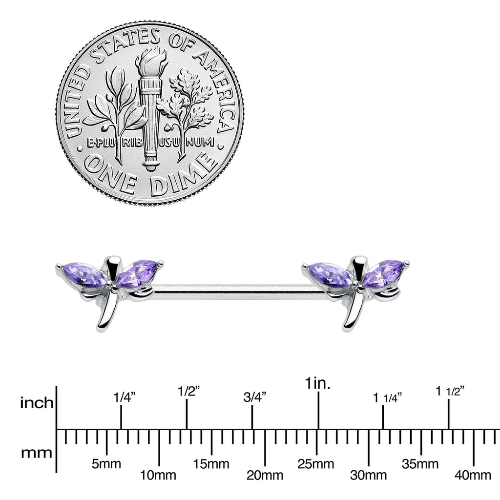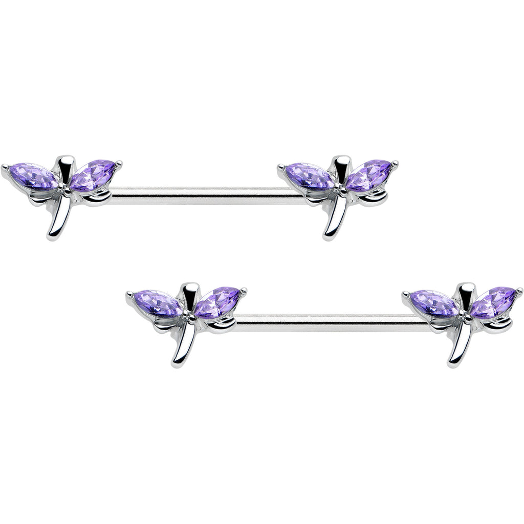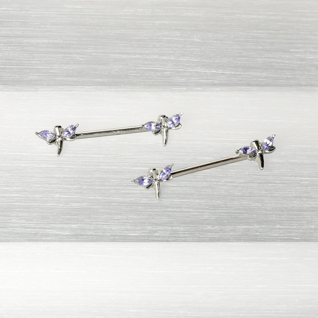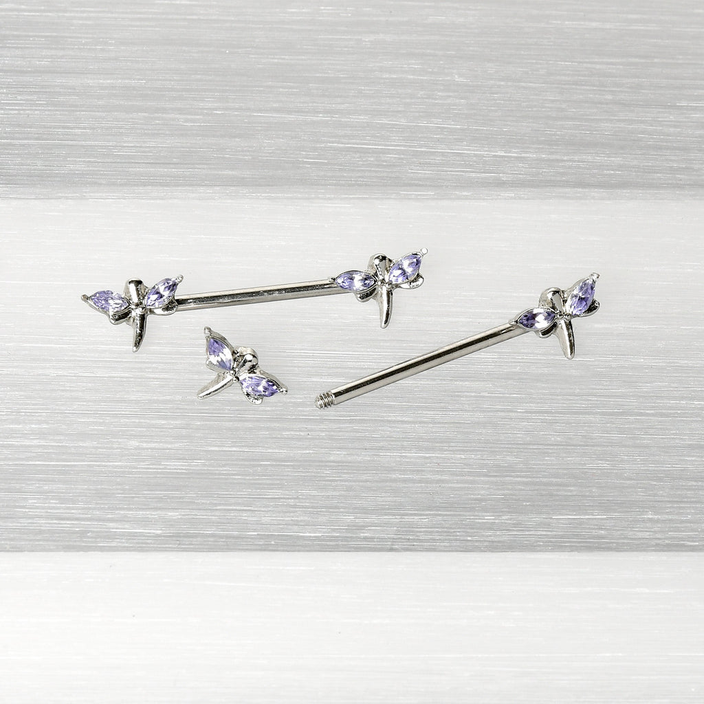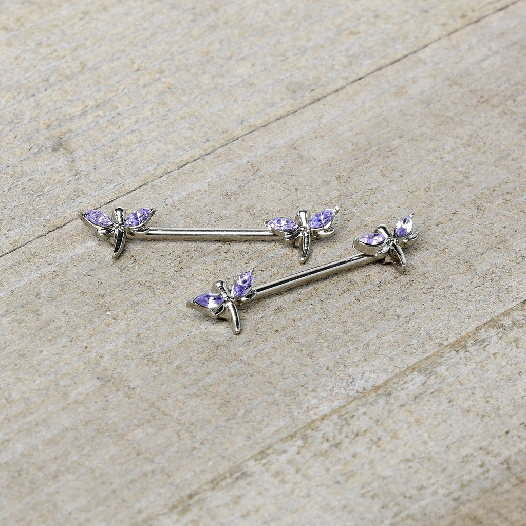 14 Gauge 5/8 Purple Gem Simple Styled Dragonfly Barbell Nipple Ring Set