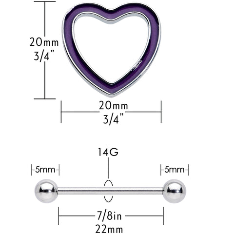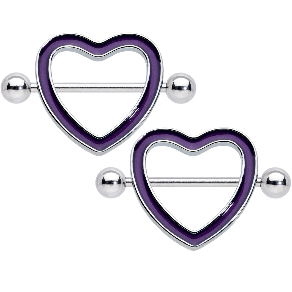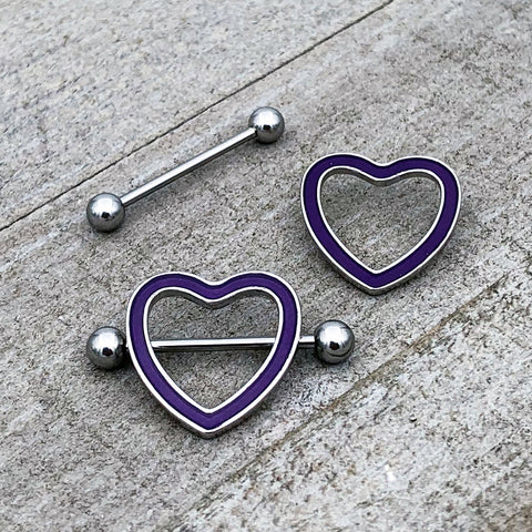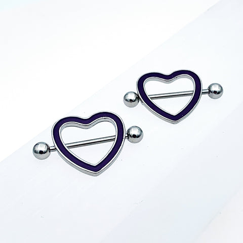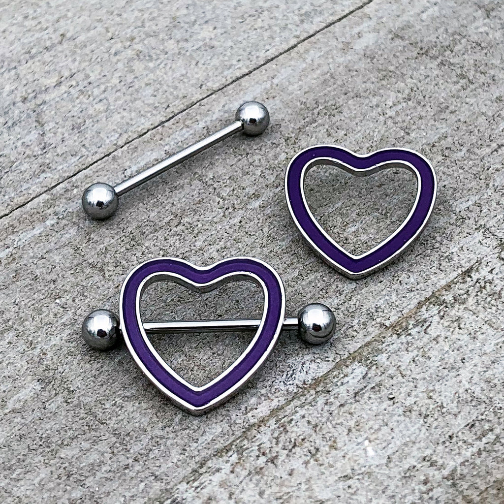 14 Gauge 5/8 Purple Heart Glow in the Dark Valentine Nipple Shield Set