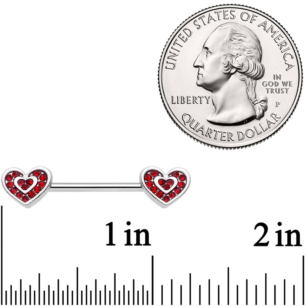 14 Gauge 5/8" Red Gem Wrapped Hearts Barbell Nipple Ring Set