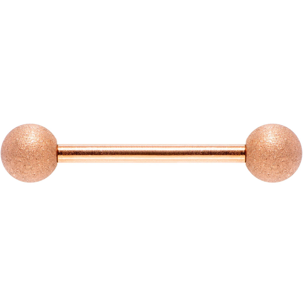 14 Gauge 5/8" Rose Gold Color PVD Sandblasted Barbell Tongue Ring