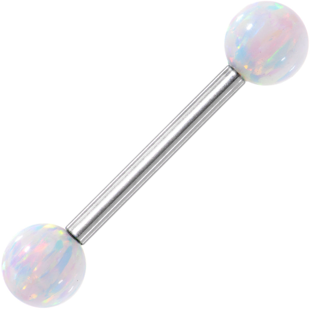 Add a splash of color that will accentuate your piercing - whichever you choose - when you wear this simply special 14 gauge barbell earring. Made with a durable 316L surgical grade stainless steel straight barbell, this barbell piercing features 6mm white synthetic opal ball ends that you will love to wear. This straight jewelry can be used as a single nipple ring or worn in any other piercing where it's a perfect fit for you!
