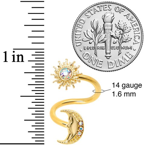 14 Gauge 7/16 Aurora Gem Gold Tone Moon Spiral Twister Belly Ring