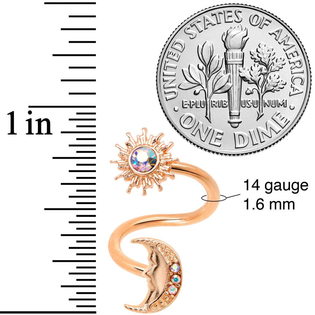 14 Gauge 7/16 Aurora Gem Rose Gold Tone Moon Spiral Twister Belly Ring