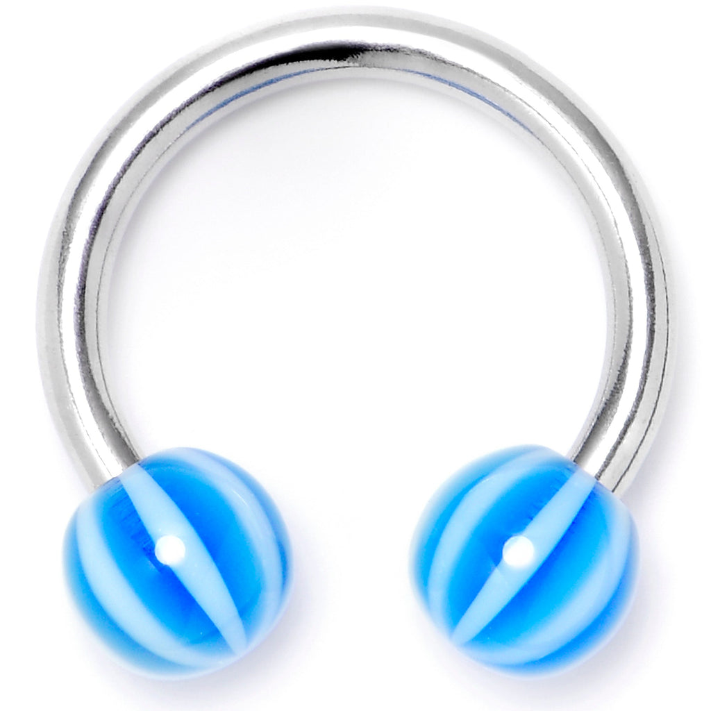 14 Gauge 7/16 Beach Ball Blue Stripe Horseshoe Circular Barbell