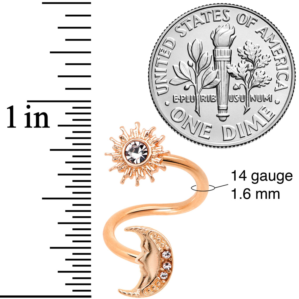 14 Gauge 7/16 Clear Gem Rose Gold Tone Moon Spiral Twister Belly Ring