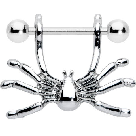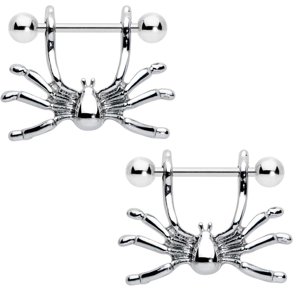 The spiders on this 14 gauge nipple jewelry are hardly eensy weensy! It's made with 11mm wearable length 316L surgical grade stainless steel straight barbells with 5mm ball ends. The shield portions feature matching black spider charms, with individually defined legs and textured detailing. These amazing arachnids will help you spin a web of sexy style when you're rocking them in your nipple piercings! Sold as a set of two.Specifications
