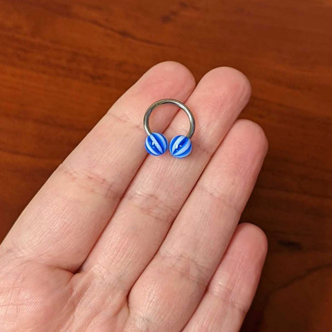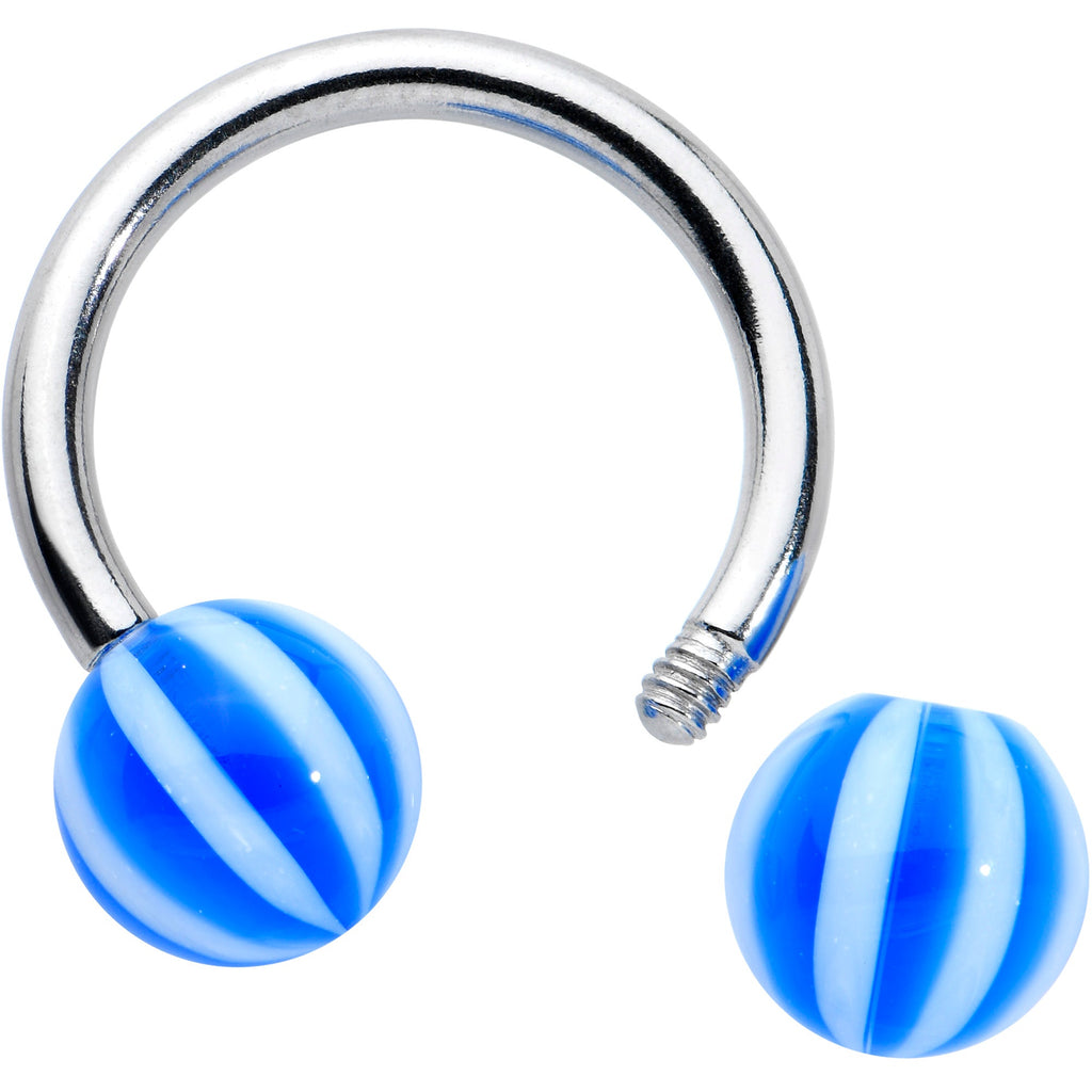 14 Gauge 7/16 Striped Blue White Ball End Horseshoe Circular Barbell