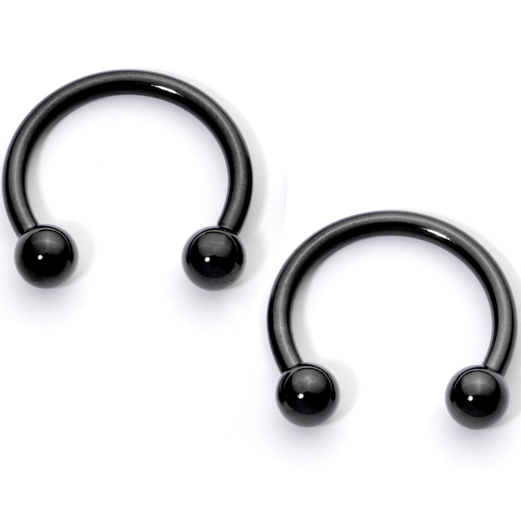 14 Gauge (1.6mm), 9/16" (14mm), 1/2" (12mm), Black Plated over 316L Surgical Grade Stainless Steel Horseshoe Curved Barbells, Black Plated over 316L Surgical Grade Stainless Steel Straight Barbells, Sold as a Set of 4