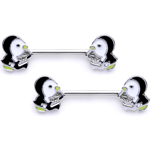14 Gauge 9/16" 1/2" Winter Penguins Horseshoe Barbell Nipple Ring Set