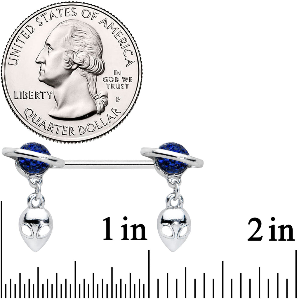 14 Gauge 9/16 Alien Dangle Blue Saturn Barbell Nipple Ring Set