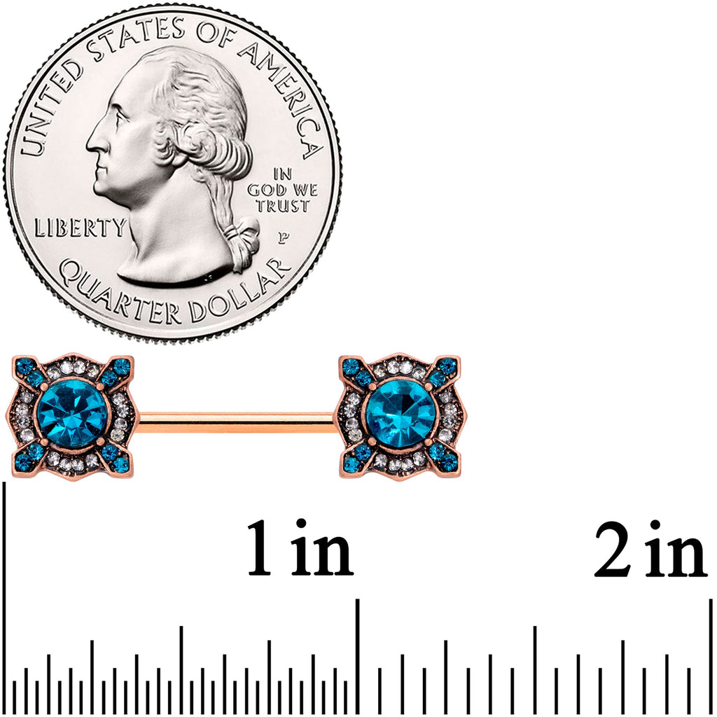 14 Gauge 9/16 Aqua Gem Rose Gold Tone Renaissance Nipple Ring Set