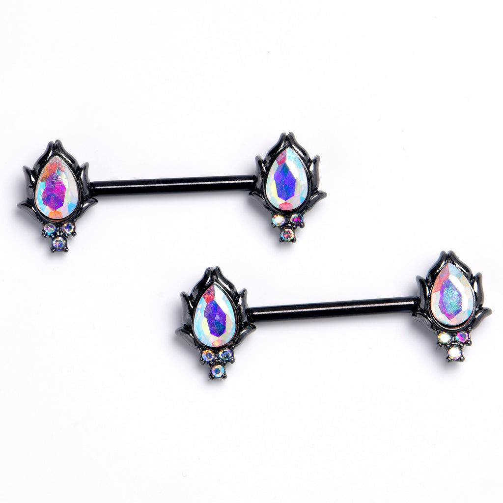 14 Gauge 9/16 Aurora CZ Gem Black Dream Drop Barbell Nipple Ring Set