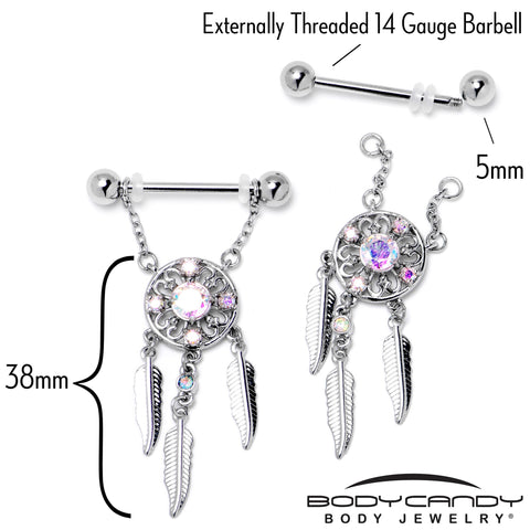14G 9/16 Aurora CZ Gem Dreamcatcher Dangle Nipple Ring Set