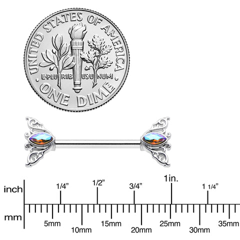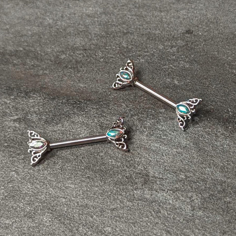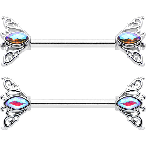 14 Gauge 9/16 Aurora Gem Deco Waves Barbell Nipple Ring Set