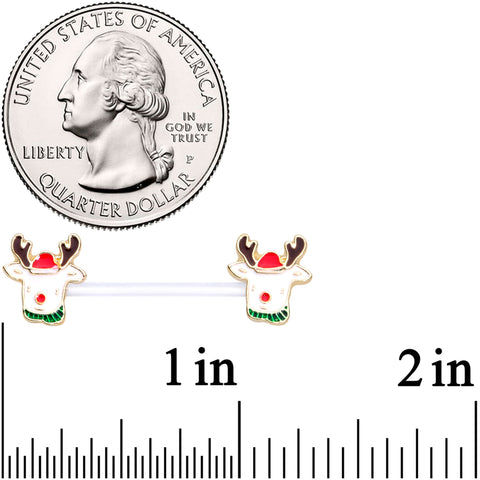 Hypoallergenic jewelry for sensitive skin14 Gauge 9/16 Bioplast Reindeer Christmas Barbell Nipple Ring Set