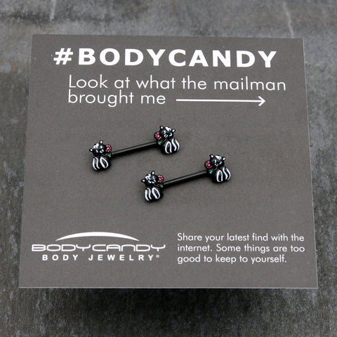 14 Gauge 9/16 Black Funky Skunk Barbell Nipple Ring Set