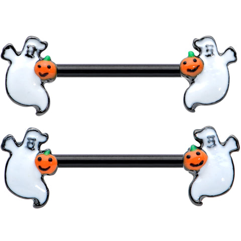 14 Gauge 9/16 Black Halloween Pumpkin Ghost Barbell Nipple Ring Set