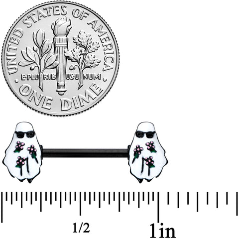 14G 9/16 Black Hipster Ghost Halloween Barbell Nipple Ring Set