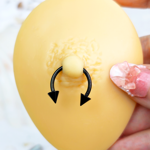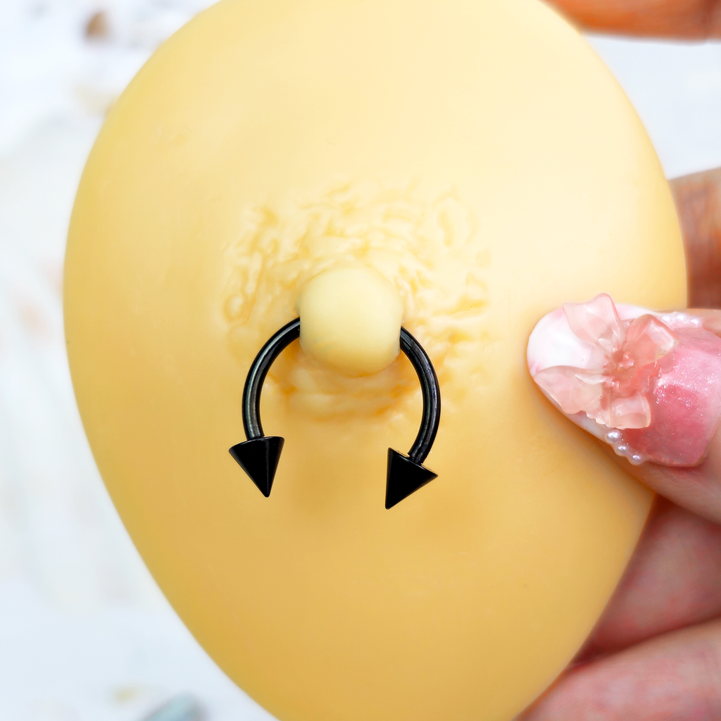 14 Gauge 9/16 Black Internally Threaded Spike Horseshoe Nipple Ring Set