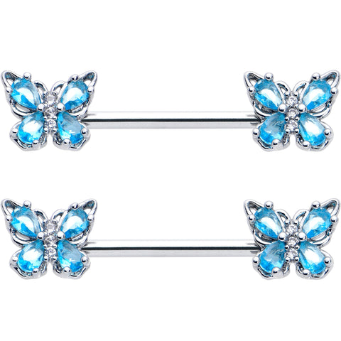 14 Gauge 9/16 Blue Gem Baroque Beauty Butterfly Barbell Nipple Ring Set