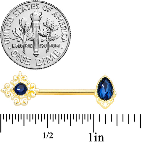 14 Gauge 9/16 Blue Gem Gold Tone Noble Barbell Nipple Ring Set