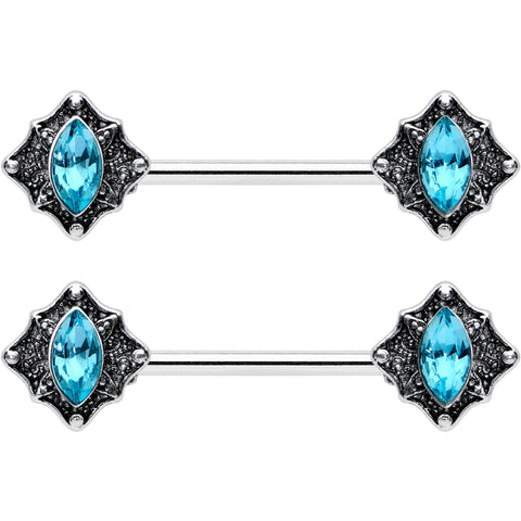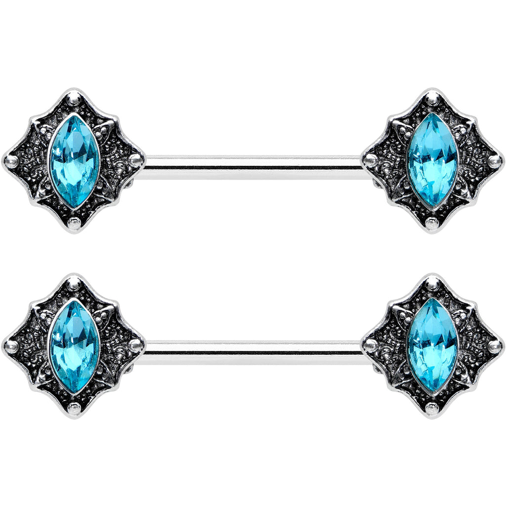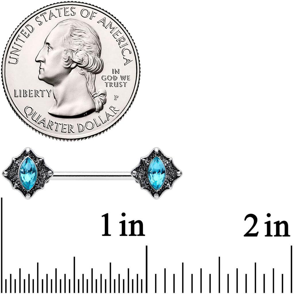 14G 9/16 Blue Gem Rhombus Retro Barbell Nipple Ring Set